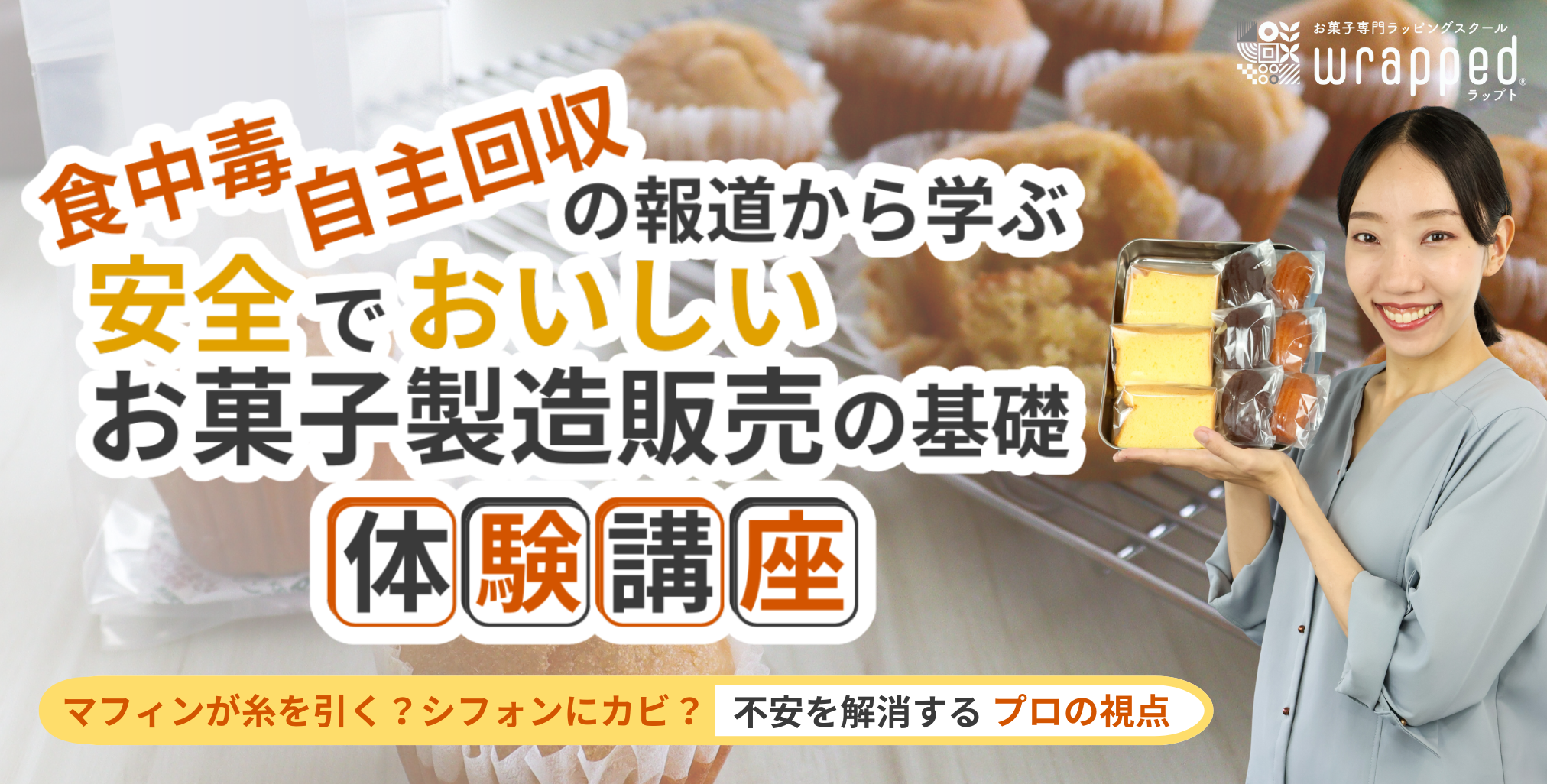 「食中毒・自主回収報道から学ぶ安全でおいしいお菓子製造販売の基礎 体験講座」講義 wrapped焼菓子包装プロフェッショナルコース講座等のご案内 個別相談(後日個別でzoom開催) |